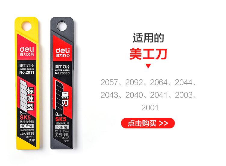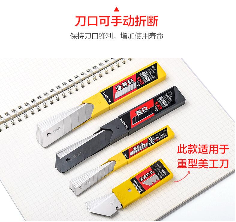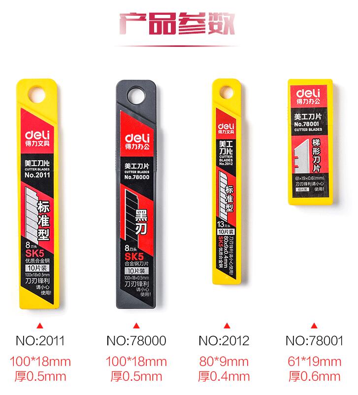 得力美工刀片 標(biāo)準(zhǔn)型8盒(80片) 用30度雕刻貼膜專(zhuān)用墻紙壁紙大碼梯形刀片切紙80片裝批發(fā)