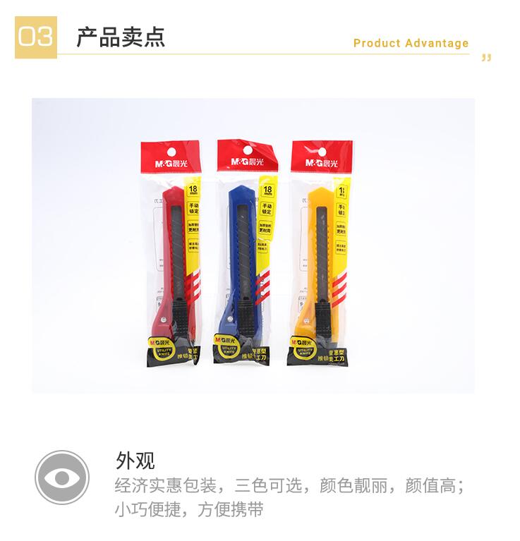 晨光美工刀 美工刀3把 大號壁紙刀小刀裁紙刀片快遞刀美工刀片工業(yè)用手動推鎖美術刀學生削筆刀